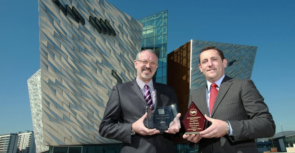 Marcon receive prestigious awards for the company’s fit-out of the Exhibition & Gallery at Titanic Belfast at the National Association of Shopfitters (NAS) Design Partnership Awards. Marcon were delighted with the recognition of this iconic space having designed and built the set works which formed the exhibition structure and route through the galleries at Titanic Belfast® as well as metal work and solid timber displays for interactive touch screen housings, personal story boards and samples of the Titanic interiors.